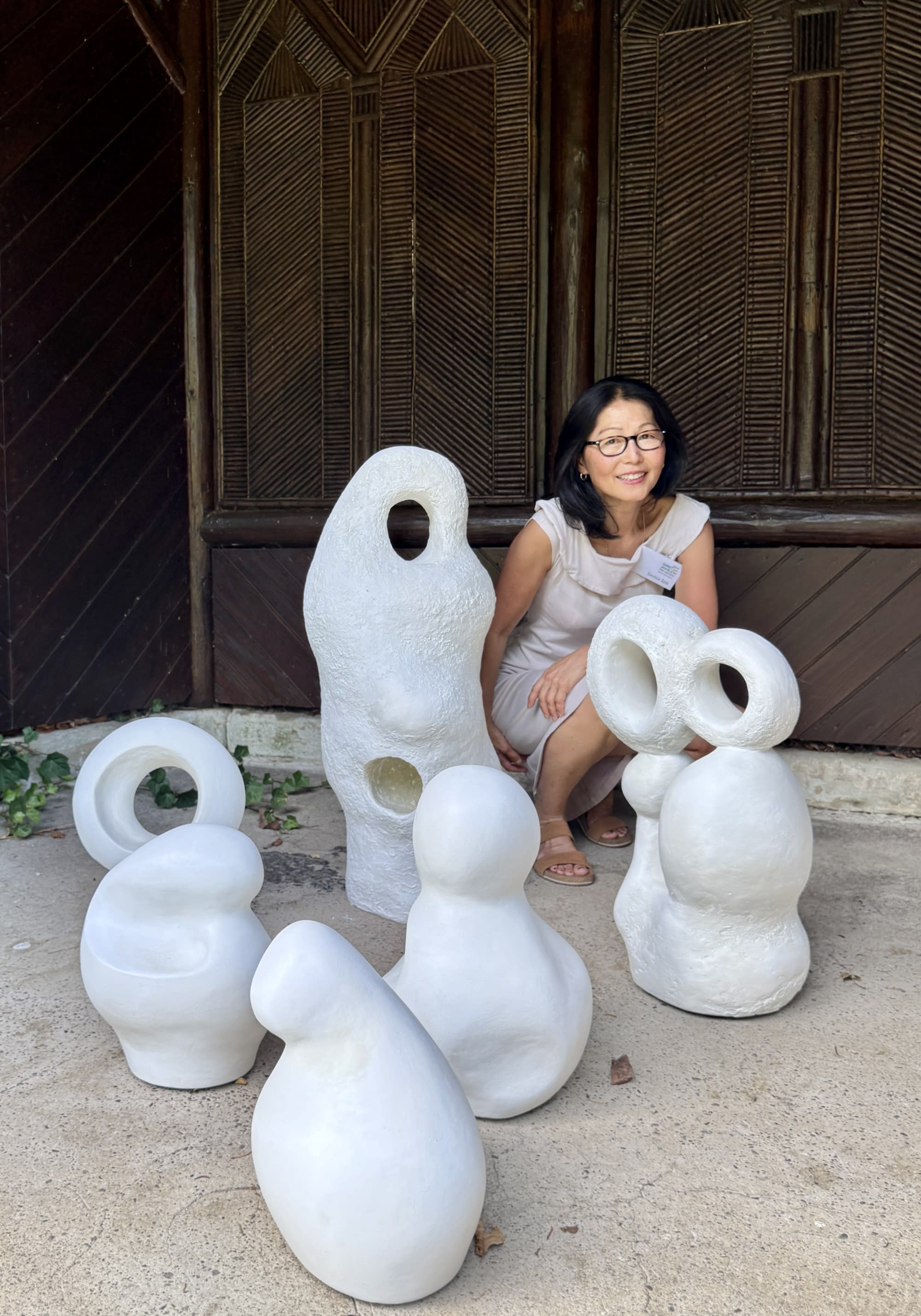 Die Skulpturen in weißer Sprache, sie sind archaische Symbole der Verbundenheit, der Seele.