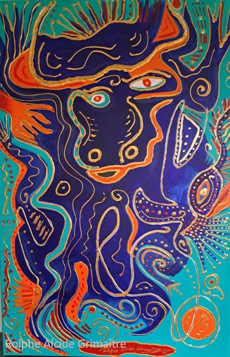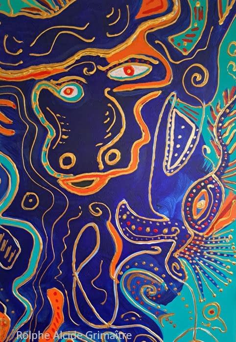 Taurus-phantasticus, das Bild mit der unglaublichen Kraft des Stiers, in wundervoller Farbkombination, intensivem Blau mit viel Gold.