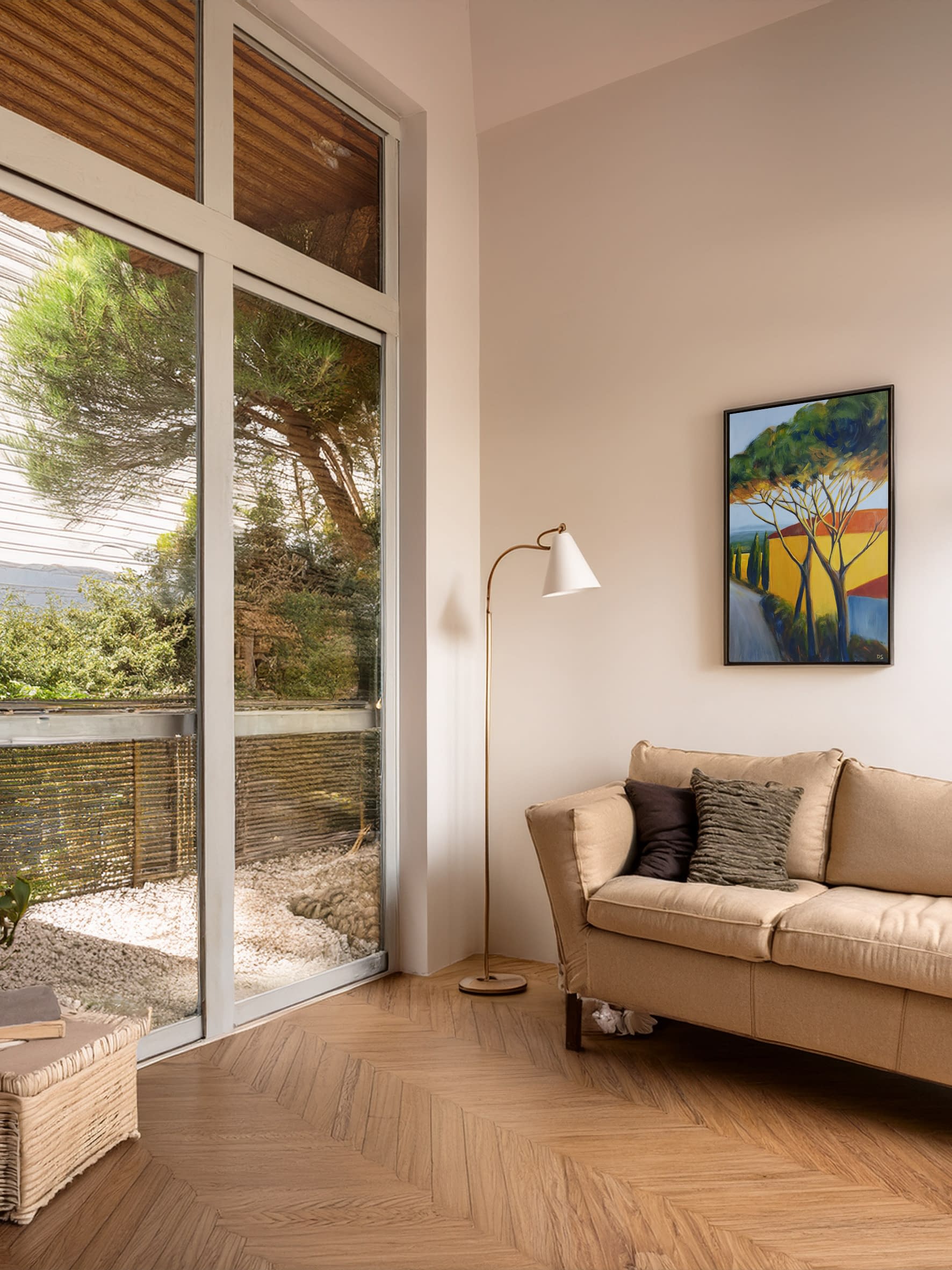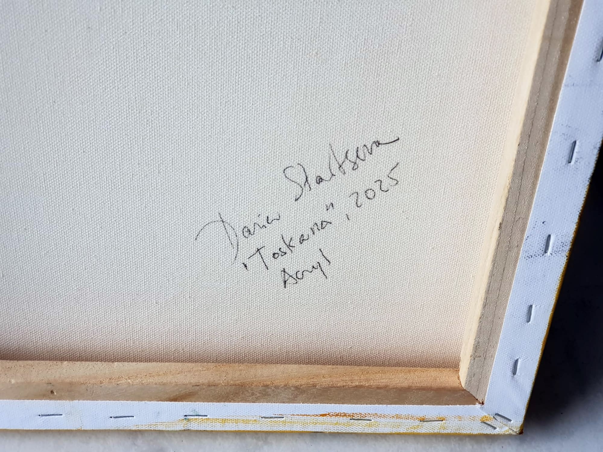 Dieses Gemälde ist inspiriert vom warmen Licht und der architektonischen Harmonie mediterraner Landschaften – einem Ort, an dem Farbe, Rhythmus und Erinnerung aufeinandertreffen. Ich wollte einen Moment der Ruhe festhalten – entlang einer sonnengetränkten Straße, wo das Licht durch Pinien fällt und goldene Reflexe auf ockerfarbene Mauern wirft.