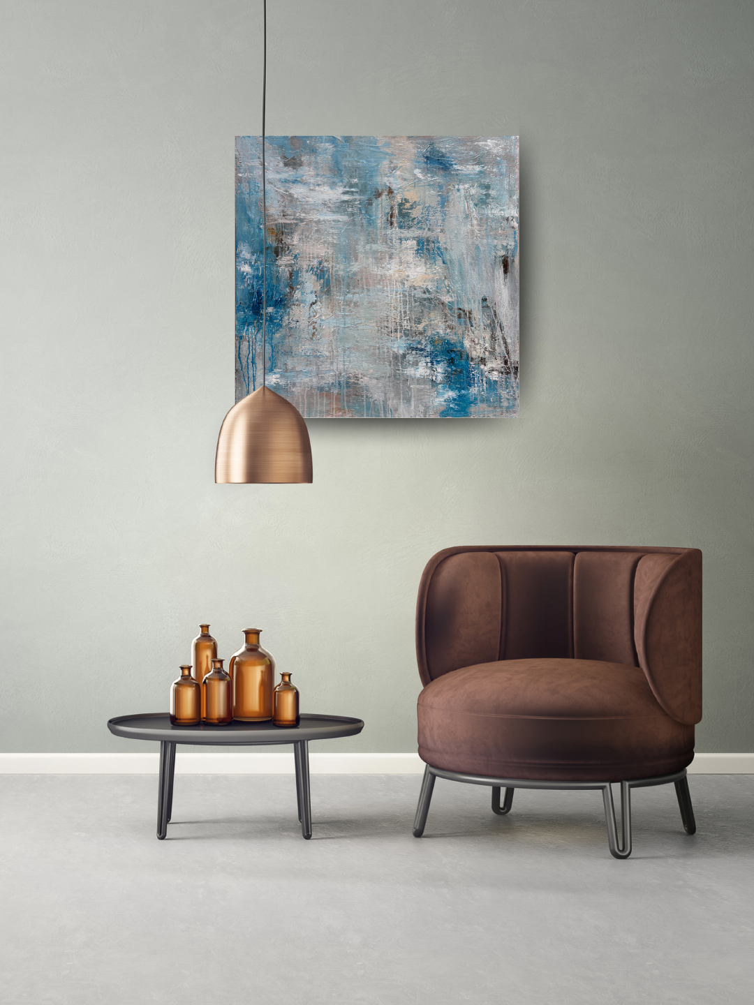 Salty Kiss evokes the sensory memory of coastal light — salty air, warm breezes, and the lingering glow of sunlit days. Through a deliberate layering technique, I translate these ephemeral sensations into texture and color, building a meditative space within the painting. Each layer is a fragment of emotion, merging warmth, light, and air into a harmonious whole. The work is an exploration of memory and atmosphere, capturing the feeling of a place where the soul feels light and at peace.